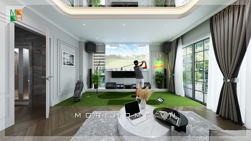 Thiết kế nội thất hiện đại từ sofa, kệ tủ,... và sự thông thoáng rộng mở của không gian tạo nên vẻ đẹp thu hút, ấn tượng cho ngôi biệt thự, nhà phố